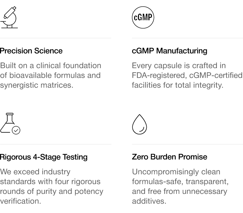 USA cGMP Certified: All our products are made in the USA in FDA-regulated, cGMP-certified facilities, ensuring the highest levels of manufacturing integrity and consistency.