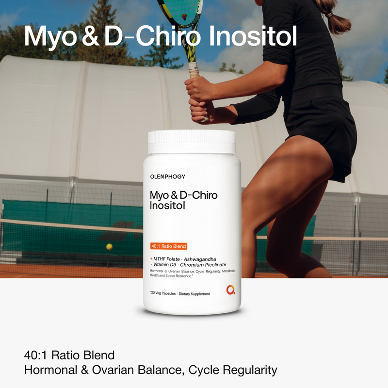 Myo & D-Chiro Inositol unites the 40:1 inositolratio, synergistically optimized with Chromium Picolinate for advanced metabolic support and standardized Ashwagandha for healthy stress response. Enhanced with active MTHF Folate and Vitamin D3, this complete formula delivers comprehensive support for hormonal balance, cycle regularity, and ovarian health.
